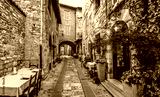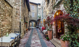 Romantic dinner place in a beautiful alley in the ancient town of Assisi, Umbria, Italy