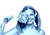 Girl eating colourful lollipop. Lollipop. Isolated on white background