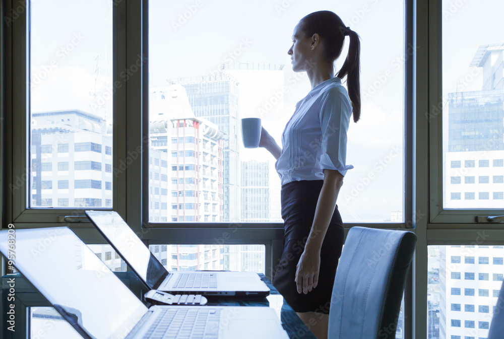 Business woman looking out the window