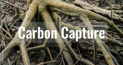 Mangrove root carbon capture. Natural carbon sink in blue carbon ecosystem. Sustainable environmental conservation through mangrove forest as effective CO2 absorber. Climate change mitigation strategy
