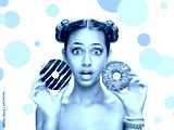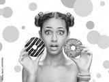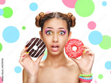 Beautiful girl with colorful donuts.