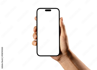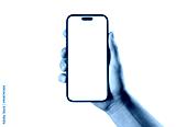 Hand holding smartphone mockup as png photo with blank screen isolated on white background. mobile phone hand mockup