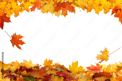 Beautiful yellow,red,orange foliage. Natural background. Border frame of colorful leaves. Vibrant fall colors.Autumn falling leaves cutouts