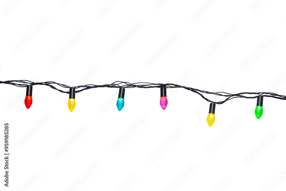 String of Christmas lights isolated on transparent background.