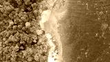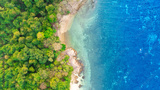Top view beach sand background for summer vacation concept. Beach nature and summer seawater with sunlight light sandy beach Sparkling sea water