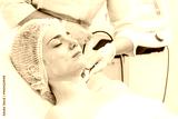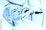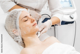 A cosmetologist performs RF lifting and ultrasound facial tightening in a modern salon. This advanced treatment rejuvenates and firms skin, perfect for showcasing effective beauty solutions.