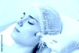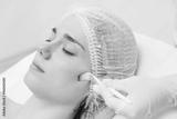 A cosmetologist applies a luxurious face cream in a contemporary beauty clinic, emphasizing cutting-edge skincare methods. Perfect for promoting high-end spa services in your marketing materials.