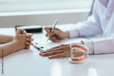 In a dental clinic, orthodontists and nurses work together to examine and treat patients' oral health. They discuss dental hygiene, repairs, and care while ensuring that the visit is comfortable.