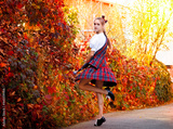 Girl dancing in the Irish dance costume