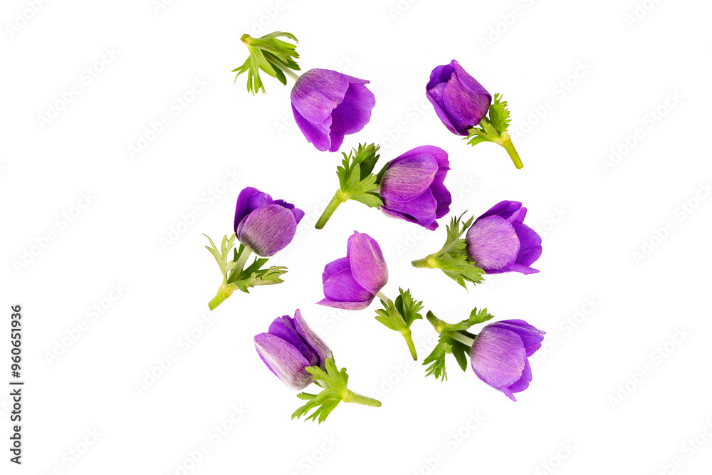 Purple anemone - Anemone coronaria - on the white background
