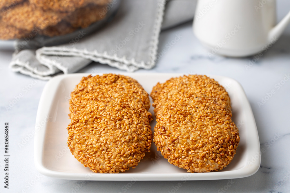 Ramadan sweets background. Cookies of El Fitr Islamic Feast. Egyptian cookies "Kahk El Eid" Turkish name; Kahke