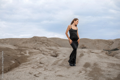 Fashion portrait of a young beautiful model in black dress
