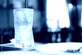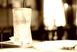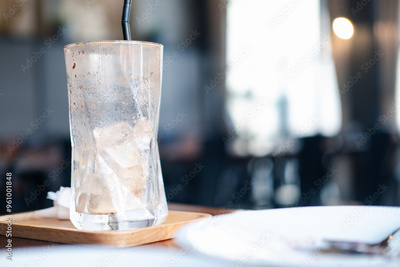 Glass cup of coffee with ice cubes after drinking coffee. The concept of lonely