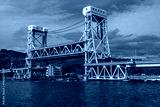 A Raised Double Deck Lift Bridge with Boats Passing Underneath