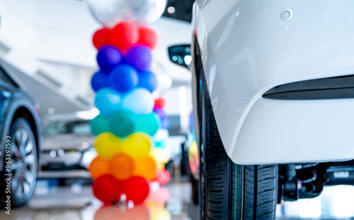 Car parked in luxury showroom. Car dealership office. Car showroom business. New car parked in modern showroom. Auto for sale and rent business. Automobile leasing and insurance. Electric automobile.