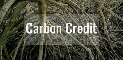Carbon credit concept. Mangrove forests as natural carbon sinks. Blue carbon storage and capture in mangrove roots. Sustainable climate change mitigation strategy using nature-based solutions. CCS.