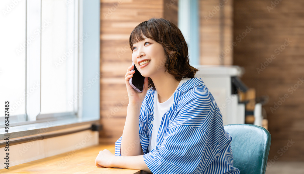 スマホで話す笑顔のビジネスウーマン