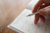 12月のスケジュール帳に記入する女性の手元