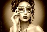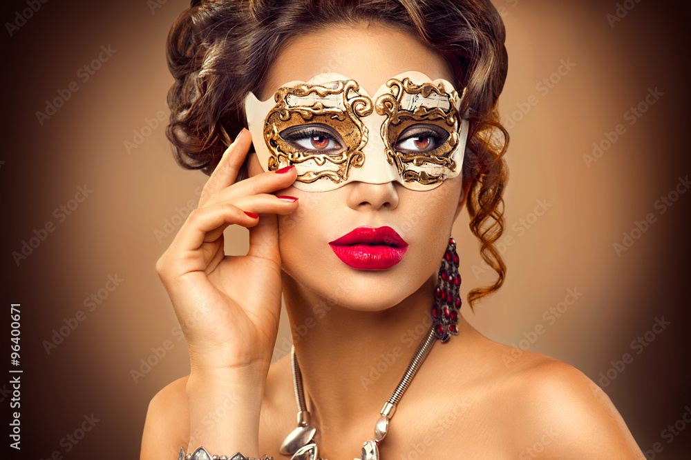 Beauty model woman wearing venetian masquerade carnival mask at party