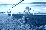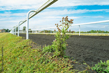 Large, wild thistle seen growing at the edge of a flat racing horse track in the famous town of Newmarket, UK. The track leads up to Warren Hill, used to train horses and jockeys.