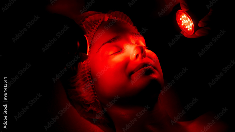 A woman undergoes LED light therapy, a non-invasive facial treatment to rejuvenate and enhance skin texture. Perfect for showcasing advanced skincare solutions for a youthful glow.