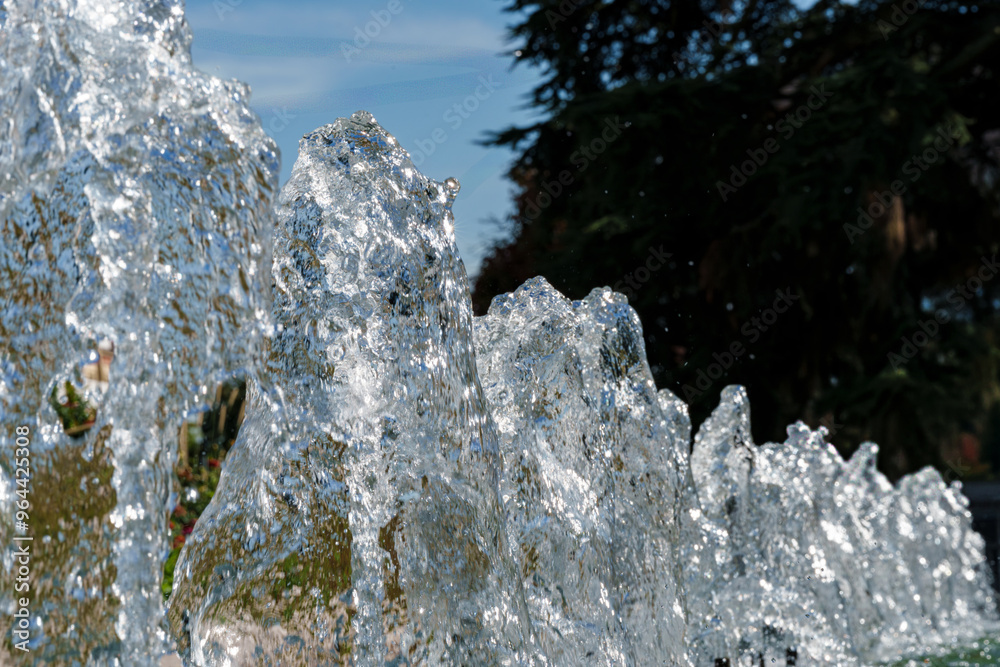 The Crystal Clear Fountain Water Splashes Delightfully in Bright Sunlight, Creating Beauty