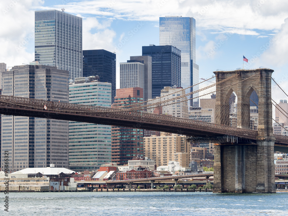 The Brooklyn Bridge and the lower Manhattan skyline in New York