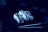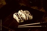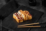 Crispy Tempura Roll with Unagi Sauce and Shrimp on Black Slate Plate