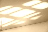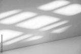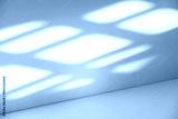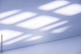 Studio style background wall decoration presentation uses white and blue tones. with shadows cast from a nearby window, concept creating a decorative backdrop.