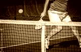 Male pickleball player hits a slice backhand shot using a yellow paddle
