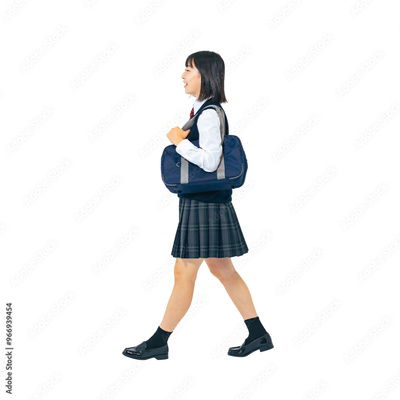 制服を着て歩く女子学生 手作業で精密に切り抜いた背景透過全身写真PNG
