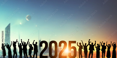 Multinational people celebrating the new year 2025. 2025 New Year concept. New year's card 2025.
