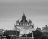 Golden Mount Temple Fair, Golden Mount Temple with red cloth in Bangkok at dusk (Wat Sraket, Thailand)