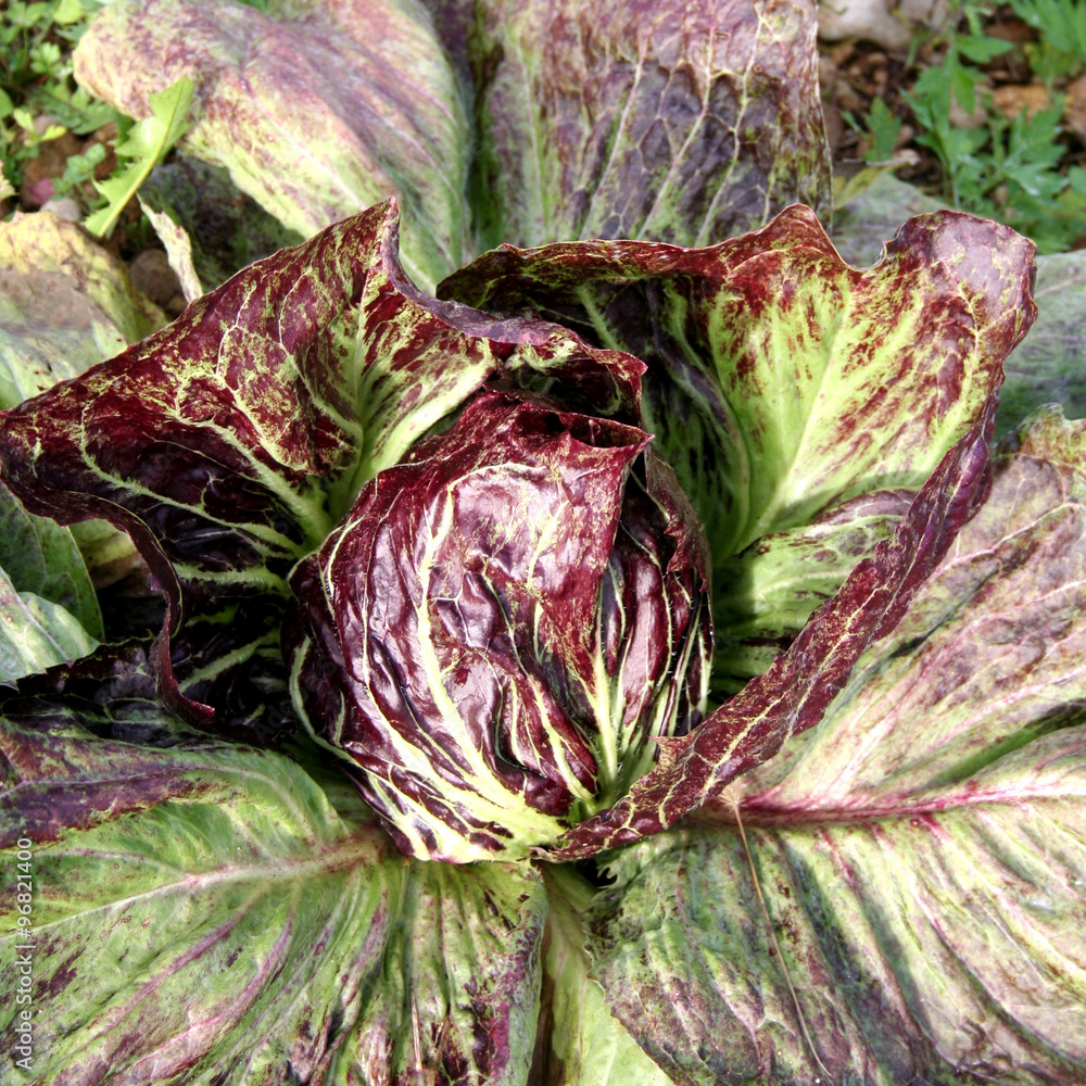 cespo di radicchio nell'orto in inverno