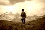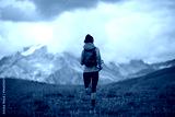 Fitness woman trail runner running in grassland