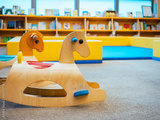 Children library with Wooden horse toy education reading room Activity for kid and family