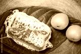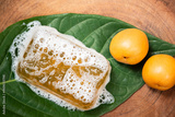 Glycerin soap mixed with apricot extract and honey on natural background.
