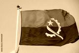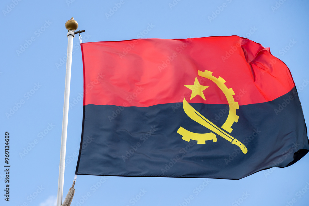 the flag of angola in the beautiful sky flutters the fabric of the national flag of angola. great for news