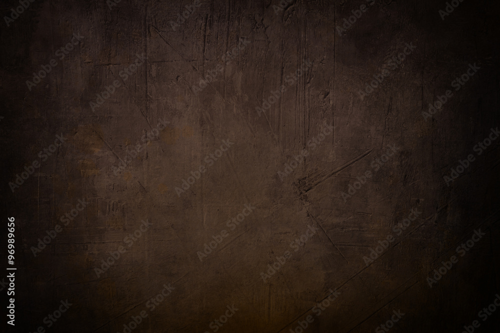 dark brown grunge background or texture with black vignette bord
