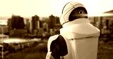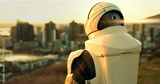 Back, city and planet with astronaut in space to search for extraterrestrial civilization. Explore, mission and universe with person in extravehicular mobility unit for discovery or mars journey