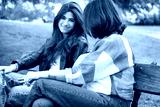 Mother and daughter relaxing on a park bench, enjoying a peaceful moment together.