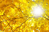 yellow beech leaf and sun