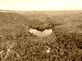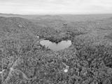 Aerial view of heart shape lake surrounded by autumn forest. Concept of earth day, love, environment, ecology. Baker Pond, Bolton-Est, Quebec, Canada.
