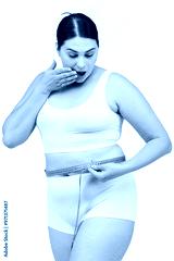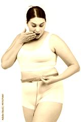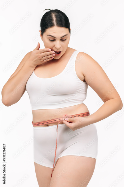 Woman measuring her body on a light background after a workout. Perfect for promoting weight loss, showcasing results, and motivating progress towards fitness goals.