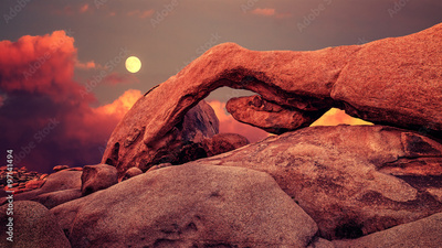 Purple sunset and rising moon in Joshua Tree National Park, USA