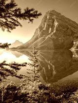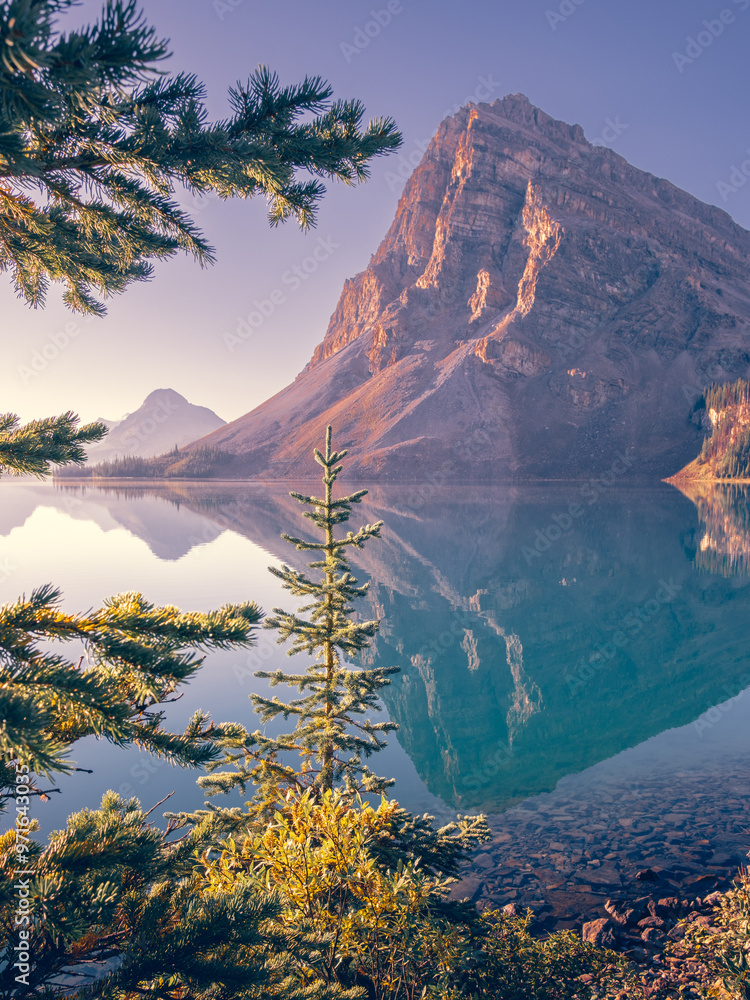 Great Canadian Rockies and glacier water lake viewed along the trail of Bow Glacier Falls, Banff National Park