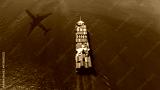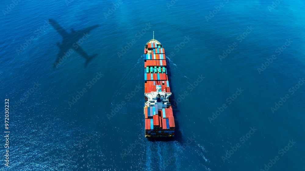 Aerial view of the freight shipping transport system cargo ship container. international transportation Export-import business, logistics, transportation industry concept