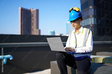 Engineer working on laptop computer at construction site