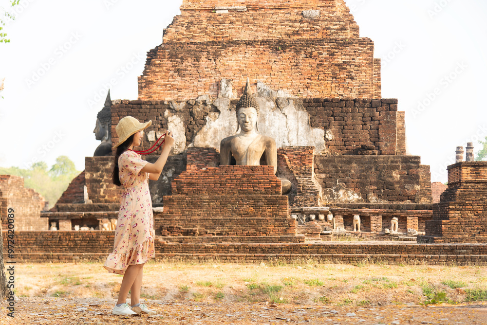 Beautiful women visiting attractions and landmarks in Thailand women happy tourists exploring a south-east asian city