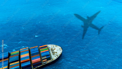 Aerial view of the freight shipping transport system cargo ship container. international transportation Export-import business, logistics, transportation industry concept